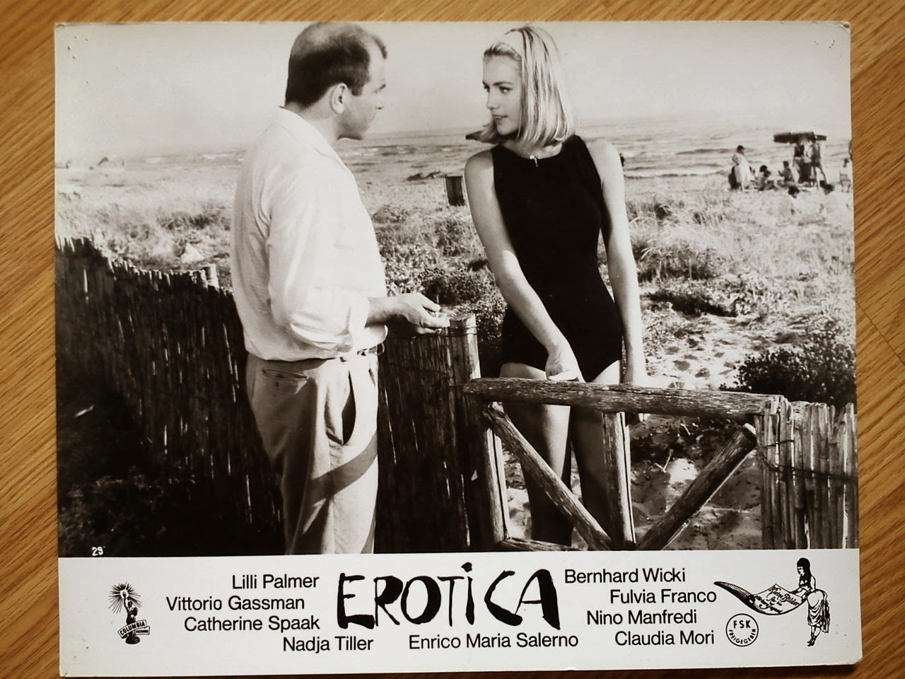 Typically, Catherine's character (for the most part) is romantically involved with older men and has some "nude" scenes that do not involve any actual on-screen nudity, but probably raised eyebrows at the time. In one particularly "scandalous" scene, a stranger offers to buy Dora a bikini, if she will let him watch her put it on, which she does. I continue to point out these scenes in Catherine's early career, in part because I believe we will eventually see that her films cultivated a certain image that may not have served her well down the road in regard to custody battles involving her daughter, Sabrina, in Catholic-dominated Italy.