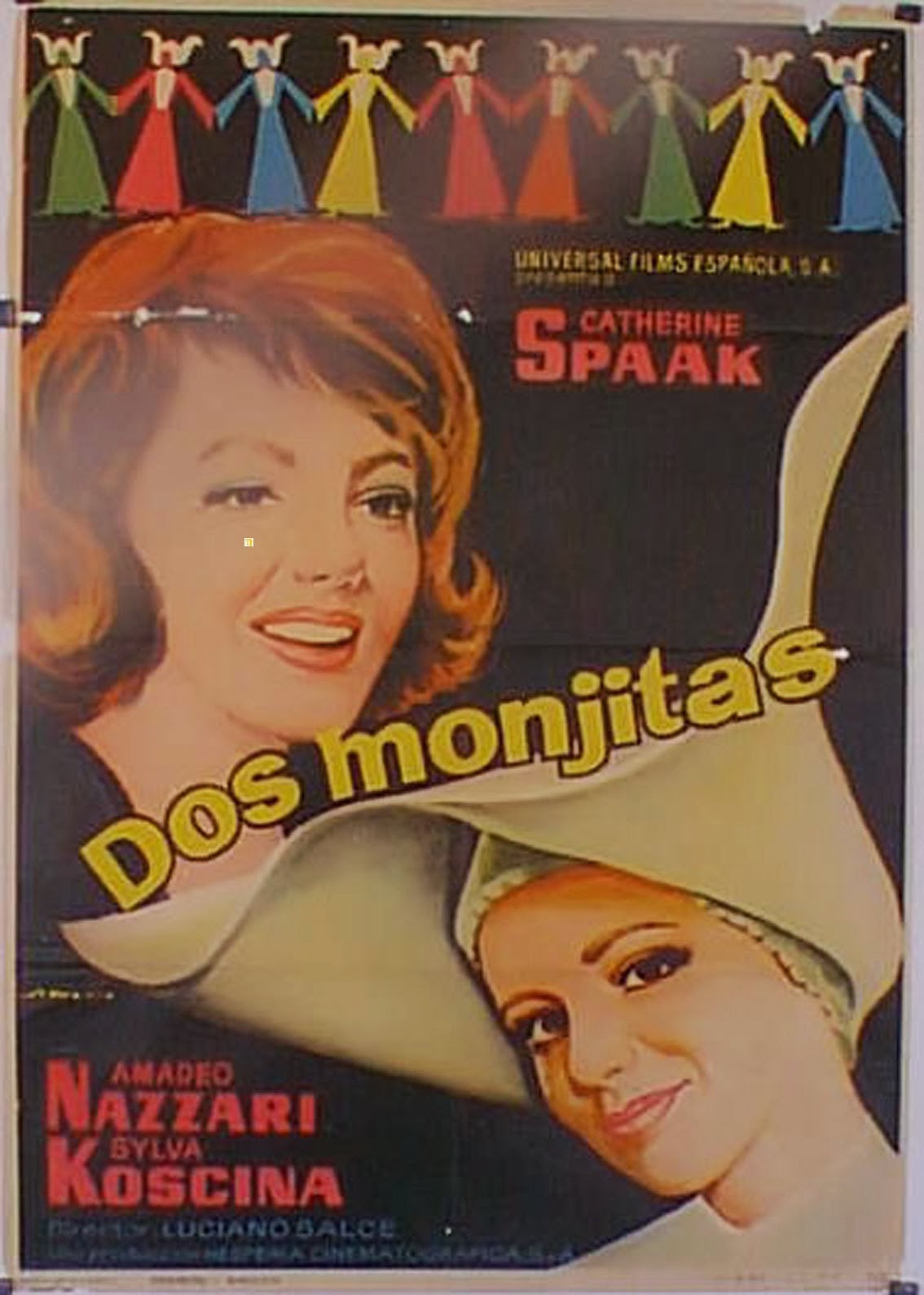 "Also in neighborhood theaters with ['The 2nd Best Secret Agent in the Whole Wide World'] is a totally inappropriate Italian film, called 'The Little Nuns,' which tells a story of a Mother Superior and a young sister who go to Rome to try to persuade Alitalia not to fly planes over their convent every day.  Didi Perego and Catherine Spaak play these sticky sweet roles, and Amedo Nazzari is the airline's general manager who is eventually browbeaten by them.  Luciano Salce directed.  It has dreary dubbed English dialogue."